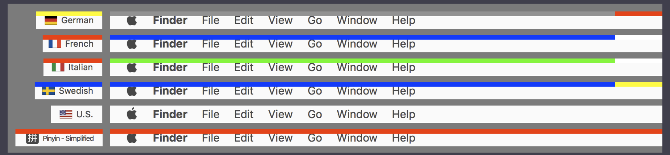 A visible indicator of the current input source for macOS.