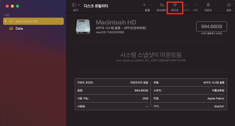 โ ๋งฅ๋ถ ํ๋๋์คํฌ ํํฐ์ ๋๋๊ธฐ