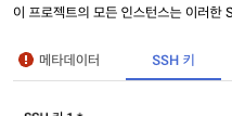 GCP -> Computer Engine์์ -> ๋ฉํ๋ฐ์ดํฐ ํด๋ฆญ