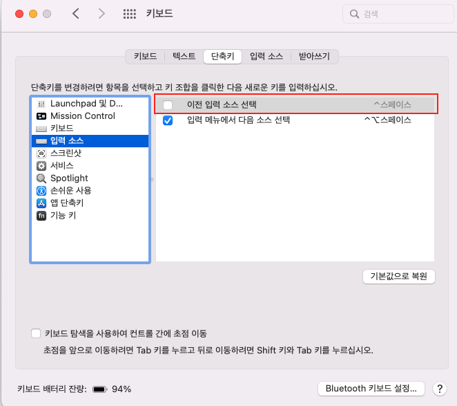 이전 입력소스 단축키를 꺼줘야지 인텔리제이 자동완성 작동한다
