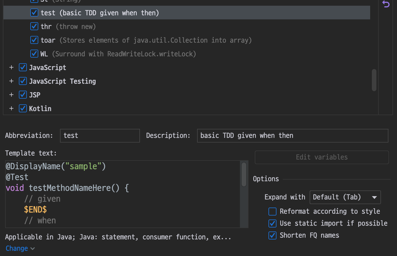 ✅ IntelliJ Live Template를 이용해서 쉽게 테스트 코드 작성하기