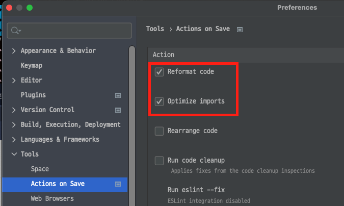 - IntelliJ ๋ฒ์ ์ด 2021.2 ์ด์์ด์ด์ผ ํด๋น ์ต์ ์ ์ค์ ํ ์ ์์ต๋๋ค. ์ดํ๋ฒ์ ์์๋ plugin์์ save action ์ฌ์ฉ