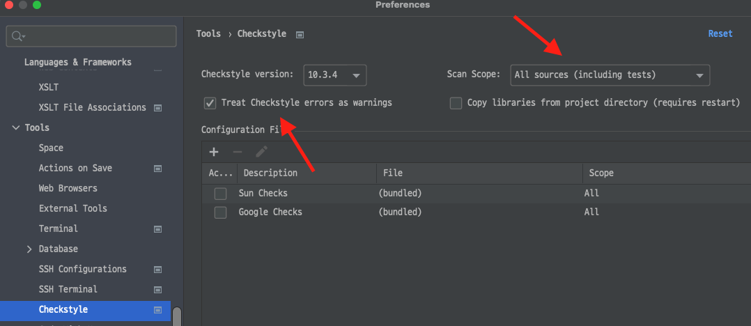 Tool -> checkstyle๊ฐ์ ์๋์ ๊ฐ์ด ์ ํ ํด์ค๋ค