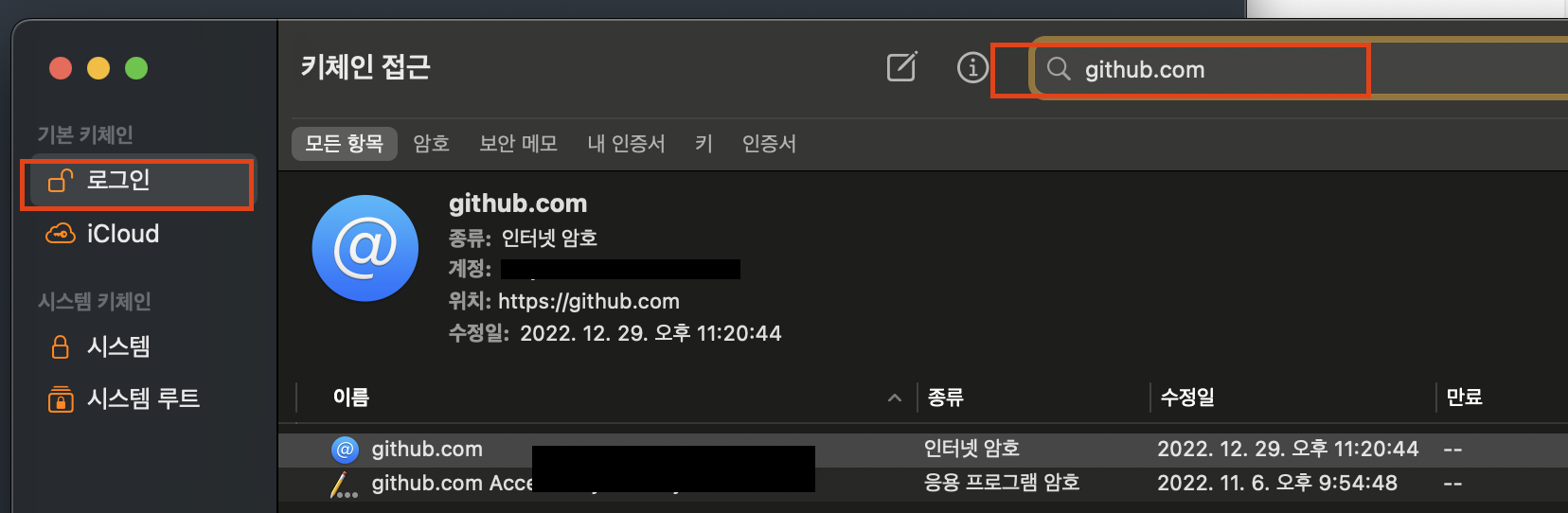 git-credential-osxkeychain์ด ํค์ฒด์ธ์์ gitbub.com ํค ์ ๊ทผ์ ํ์ฉํ๊ณ ์ ํฉ๋๋ค??? ๋์ค๊ณ ์ธ์ฆ์ด ์๋๋?? ์ฐพ์๋ณด๋