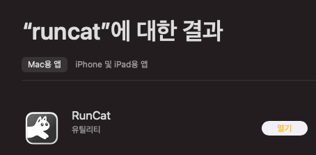 App Store์์ RunCat ๊ฒ์ ํ ์ค์น