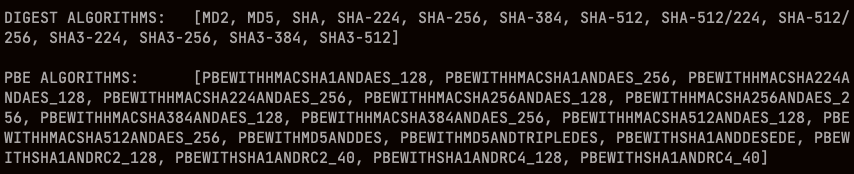 algorithm: PBEWithMD5AndDES
