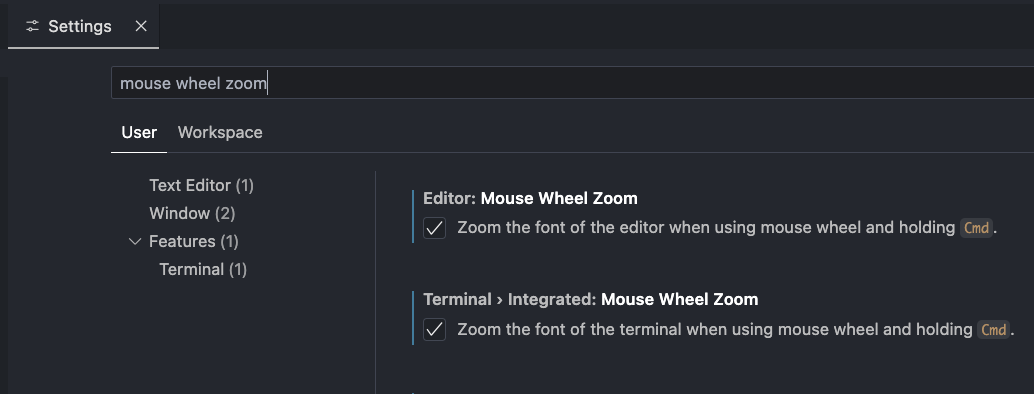 - mouse wheel zoom ๊ฒ์ํด์ ์๋ํธ ์ฐฝ๊ณผ ํฐ๋ฏธ๋ ๊ฐ๋ฅํ๋๋ก ์ฒดํฌํ๋ฉด ๋!!! ์ฆ์ฝ~!!